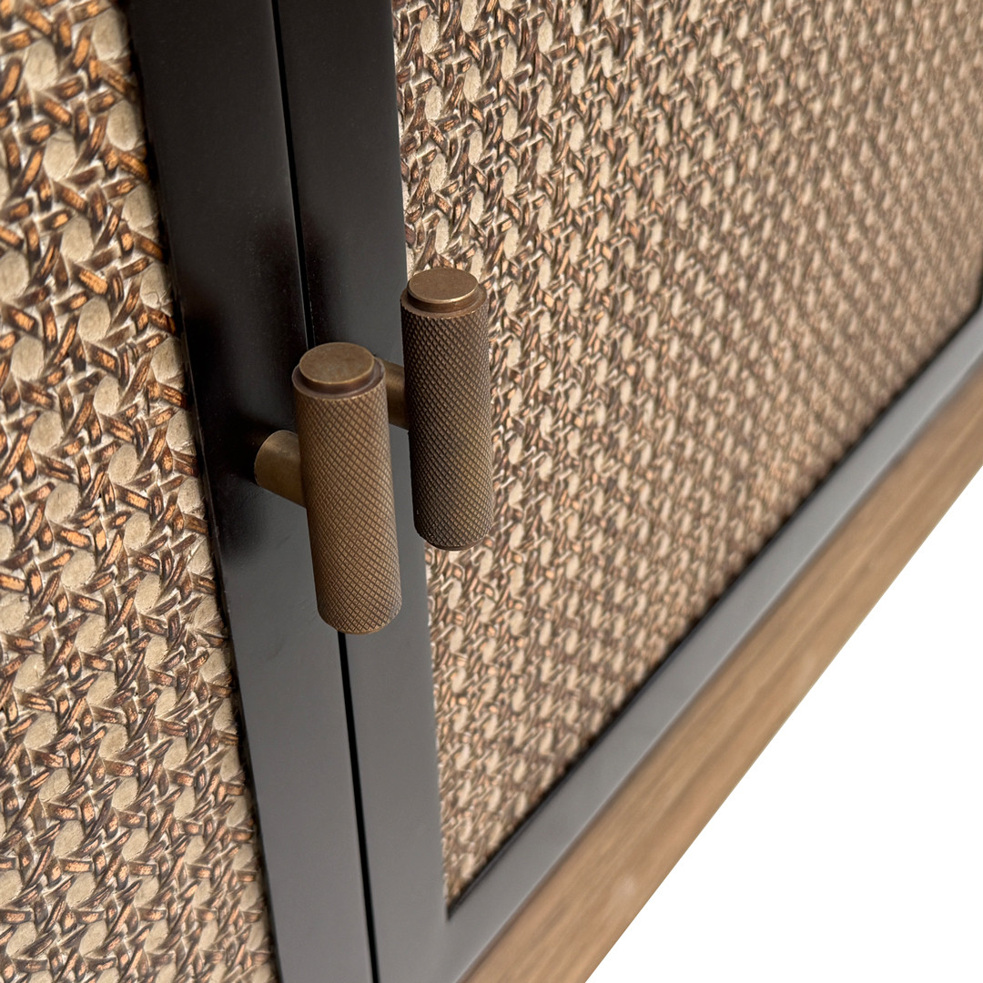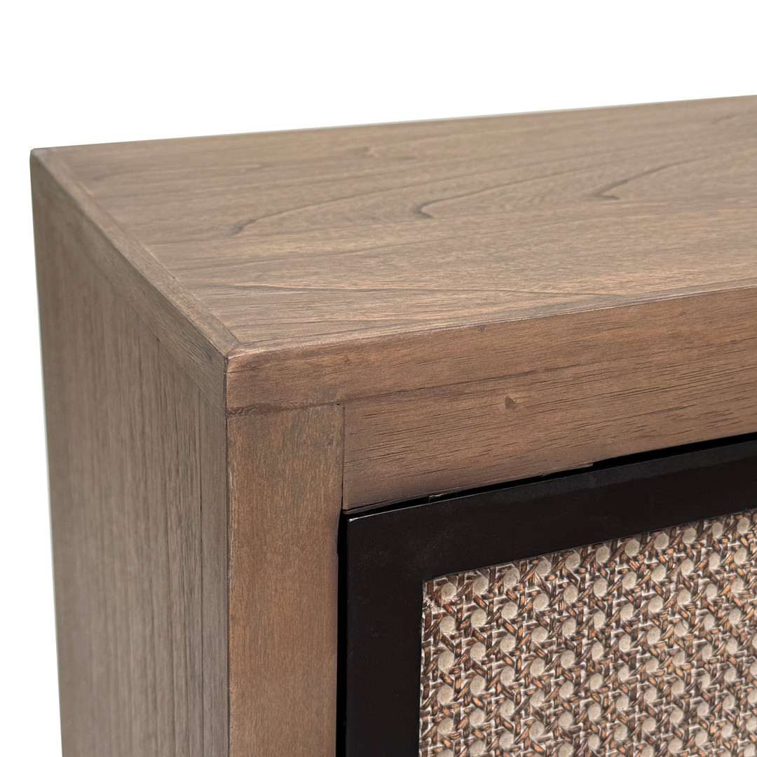 Blending natural texture with contemporary design, the Atticus Entertainment Unit showcases a hardwood frame paired with dark woven rattan doors. Subtle iron hardware completes the look, creating a balanced piece that adds depth, warmth and quiet sophistication to any room.
