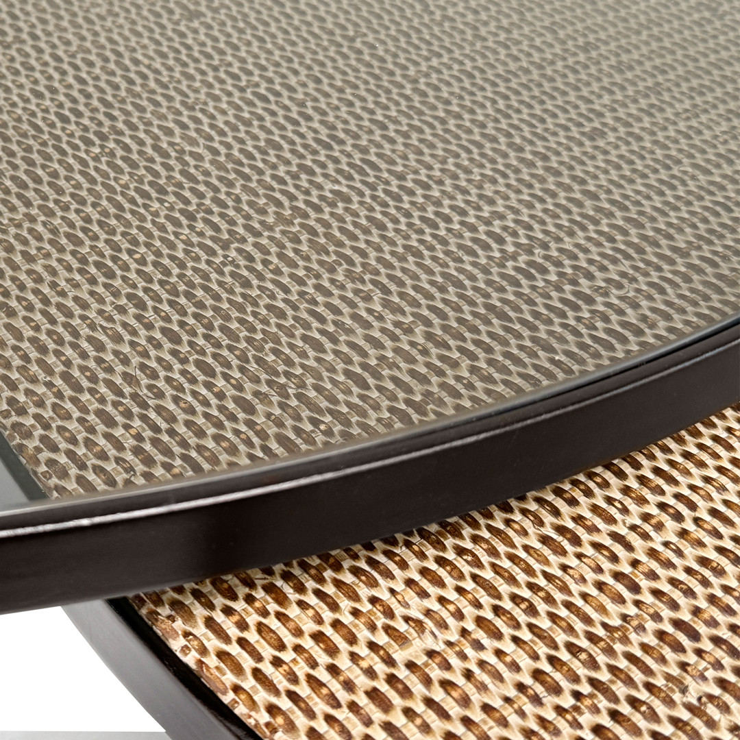The Atticus Nesting Coffee Tables combine a sleek matte black frame with richly textured dark rattan and refined smoked glass tops, creating a layered look that feels both contemporary and timeless.