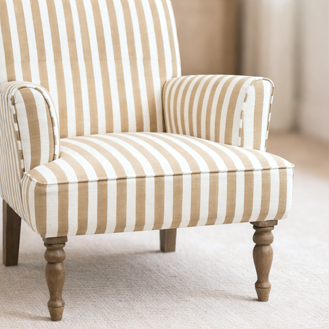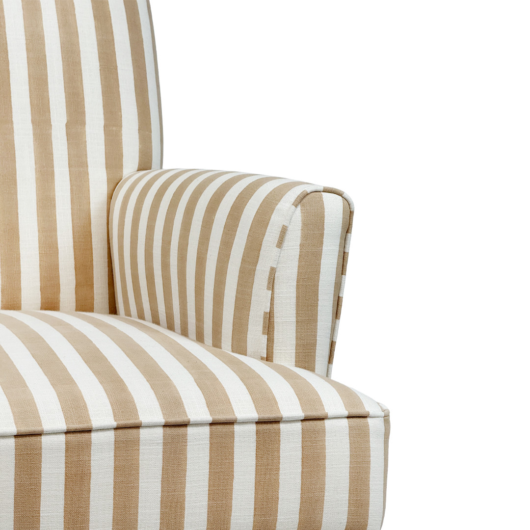 A fresh take on a classic silhouette, the Boston Armchair in Stripe brings warmth and character through its bold, woven stripe design. The soft neutral base paired with warm, earthy tones creates a relaxed yet elevated look, perfect for layering into both coastal and contemporary interiors.