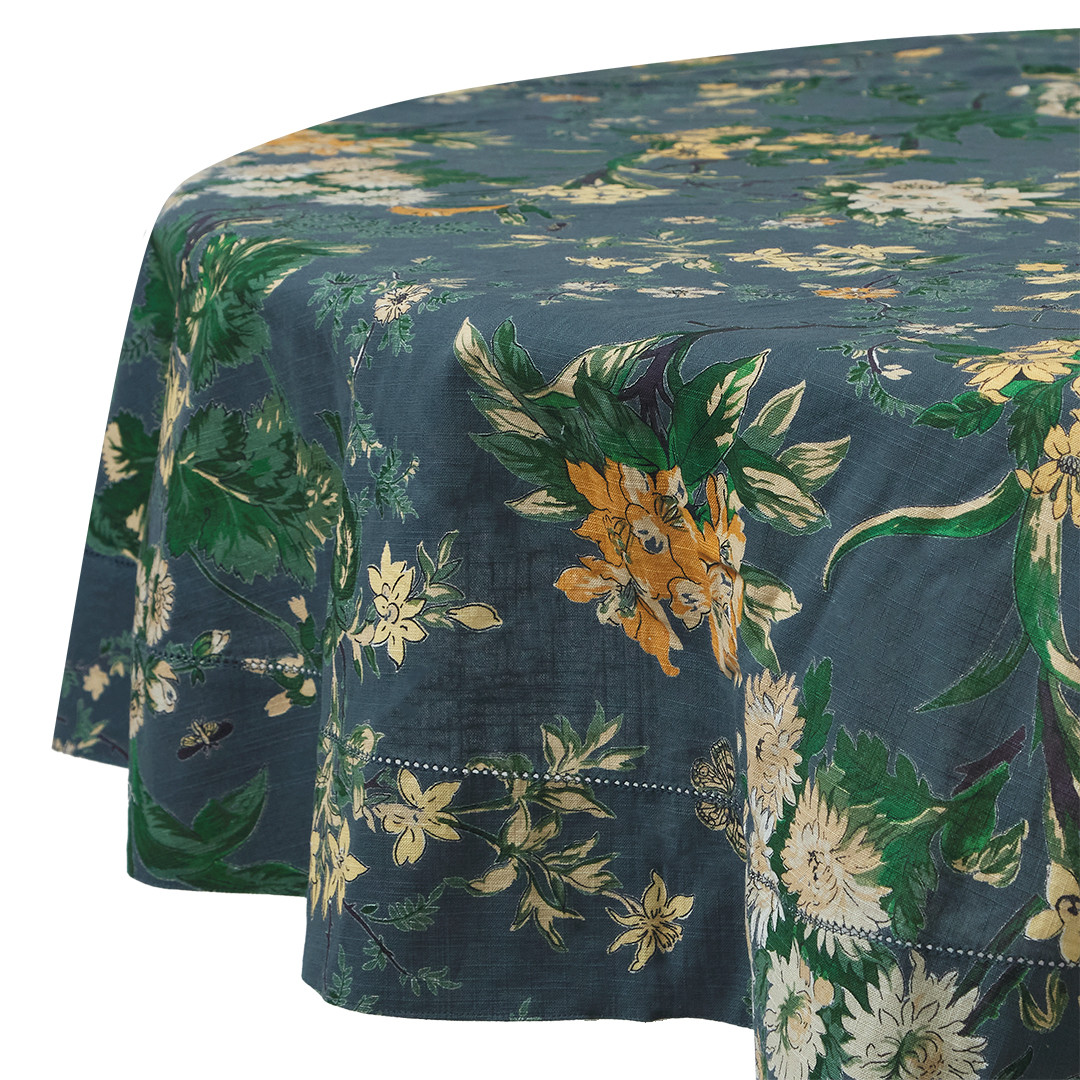 Designed for round dining tables, this tablecloth is crafted from medium slub cotton for a natural, lived-in feel. The elegant botanical print forms a subtle yet striking centrepiece.
