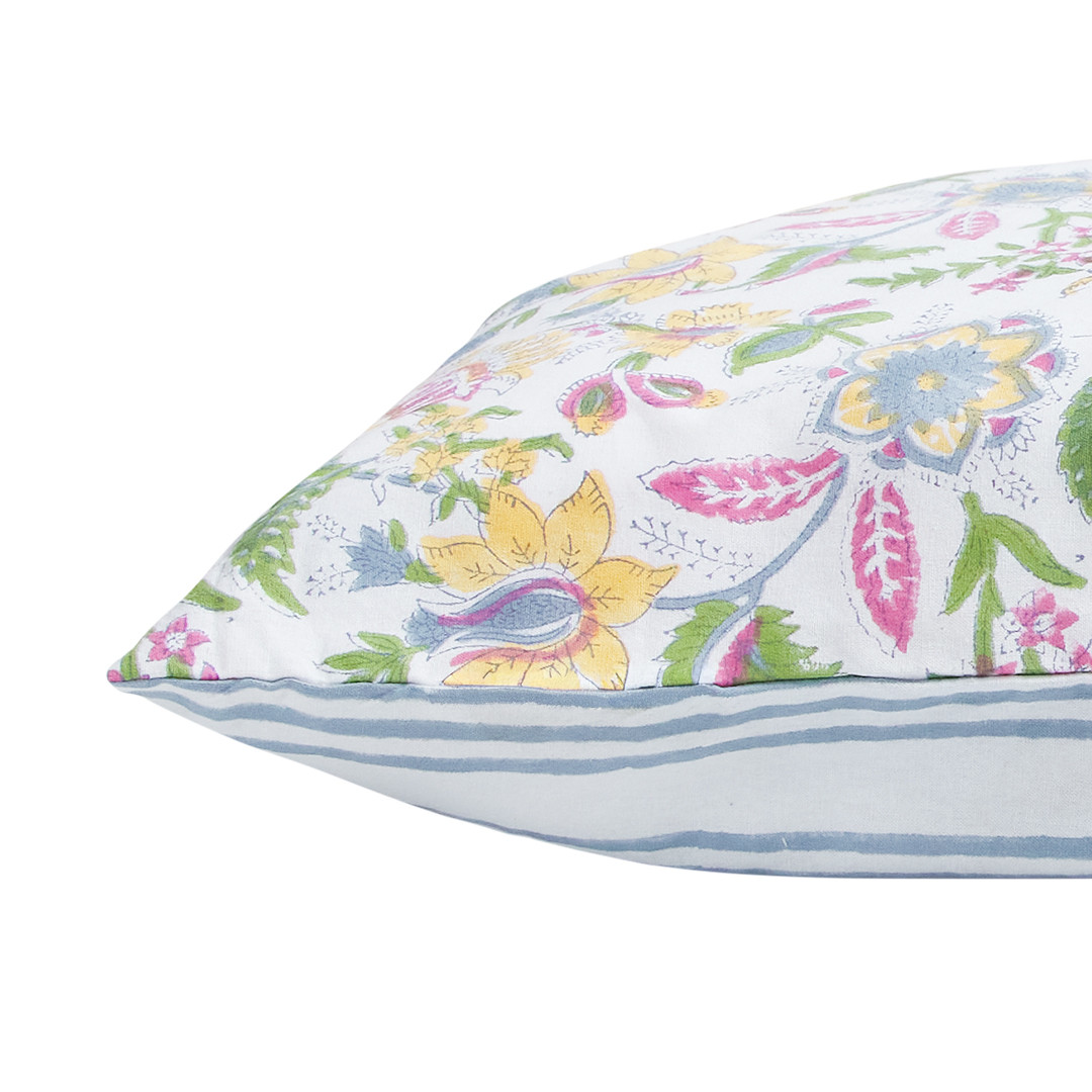 The Twilight Pillowcases Set of 2 brings a fresh burst of colour to the bedroom with its delicate floral print in soft blues, warm yellows and subtle pinks. Finished with a coordinating blue striped border, the design feels thoughtfully detailed and beautifully balanced.