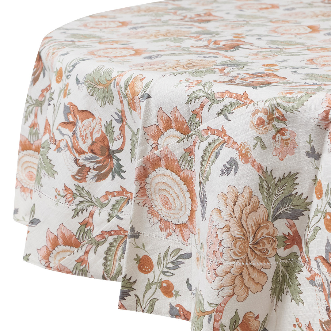 Perfect for round dining tables, this Woodland Tablecloth is made from medium slub cotton with a softly textured feel. The flowing floral pattern creates a welcoming table setting that feels both timeless and inviting.