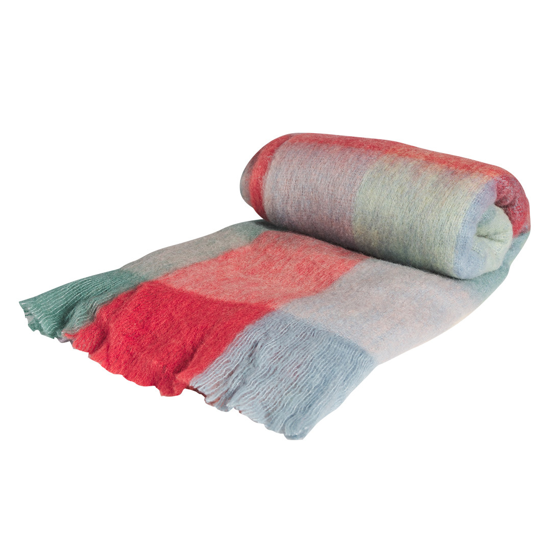 The Mayflower Throw comes in a beautiful blend of soft materials finished in striking candy colours on a large check design with matching tonal fringing.
