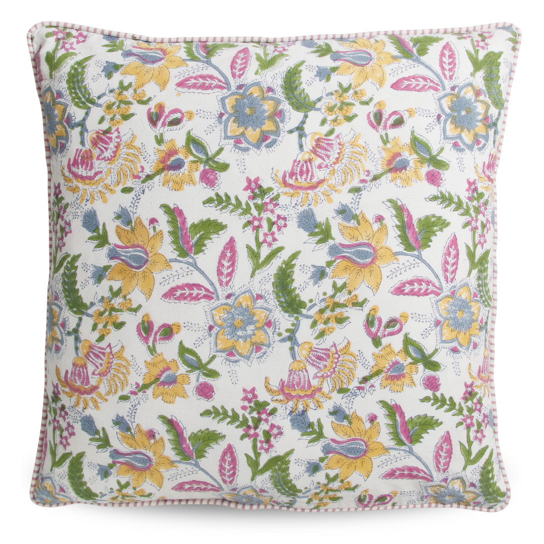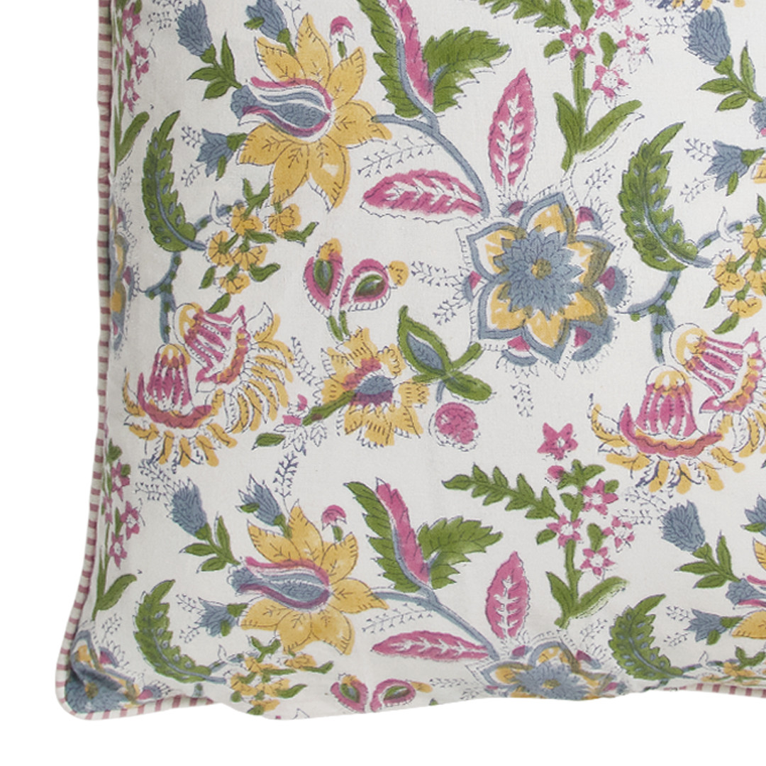The Twilight Paisley Cushion Cover is a celebration of colour and intricate detail. Featuring a beautifully layered paisley-inspired floral design, this piece blends soft twilight blue with warm golden yellow, fresh green and vibrant pink, creating a lively yet balanced palette on a crisp ivory base.