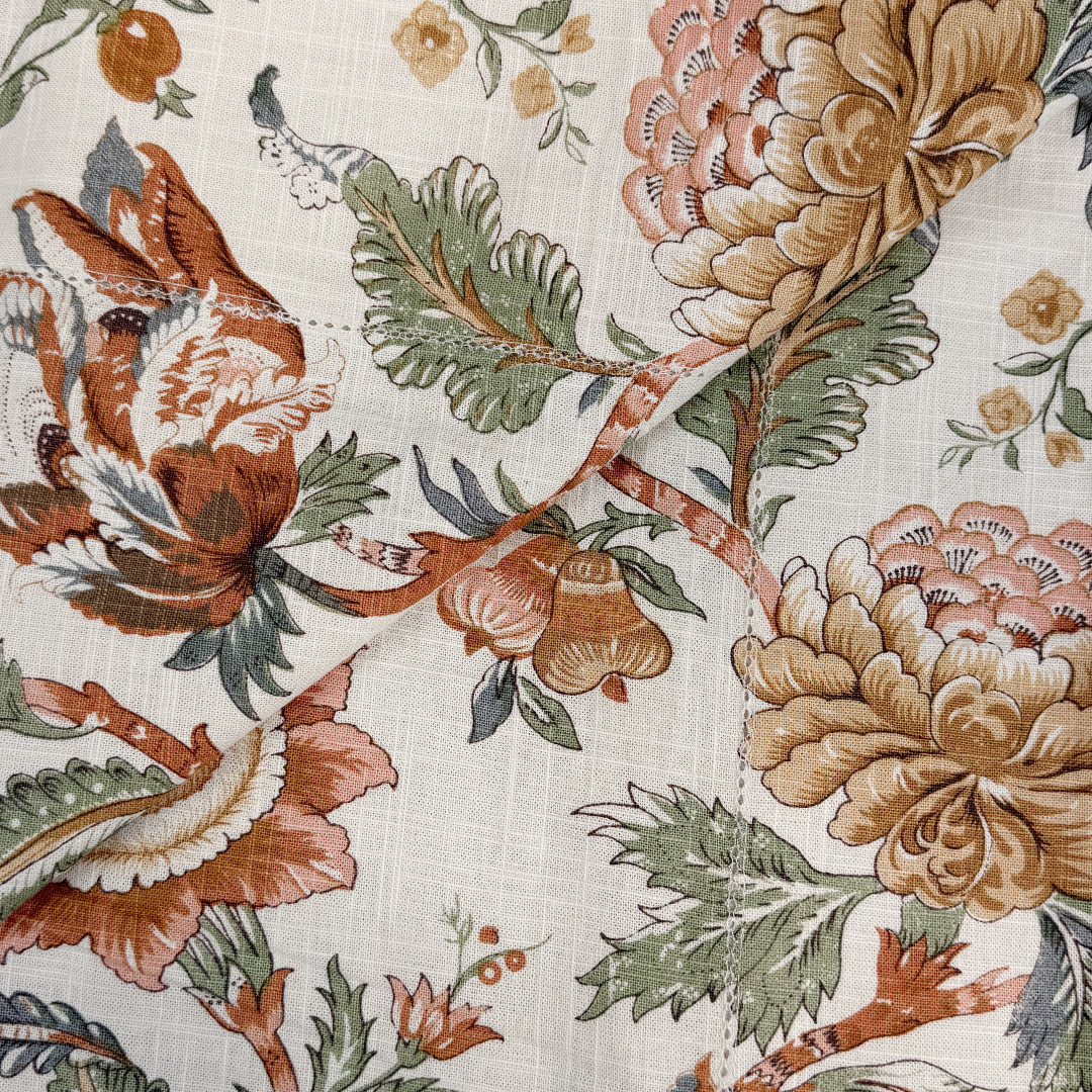 Perfect for round dining tables, this Woodland Tablecloth is made from medium slub cotton with a softly textured feel. The flowing floral pattern creates a welcoming table setting that feels both timeless and inviting.